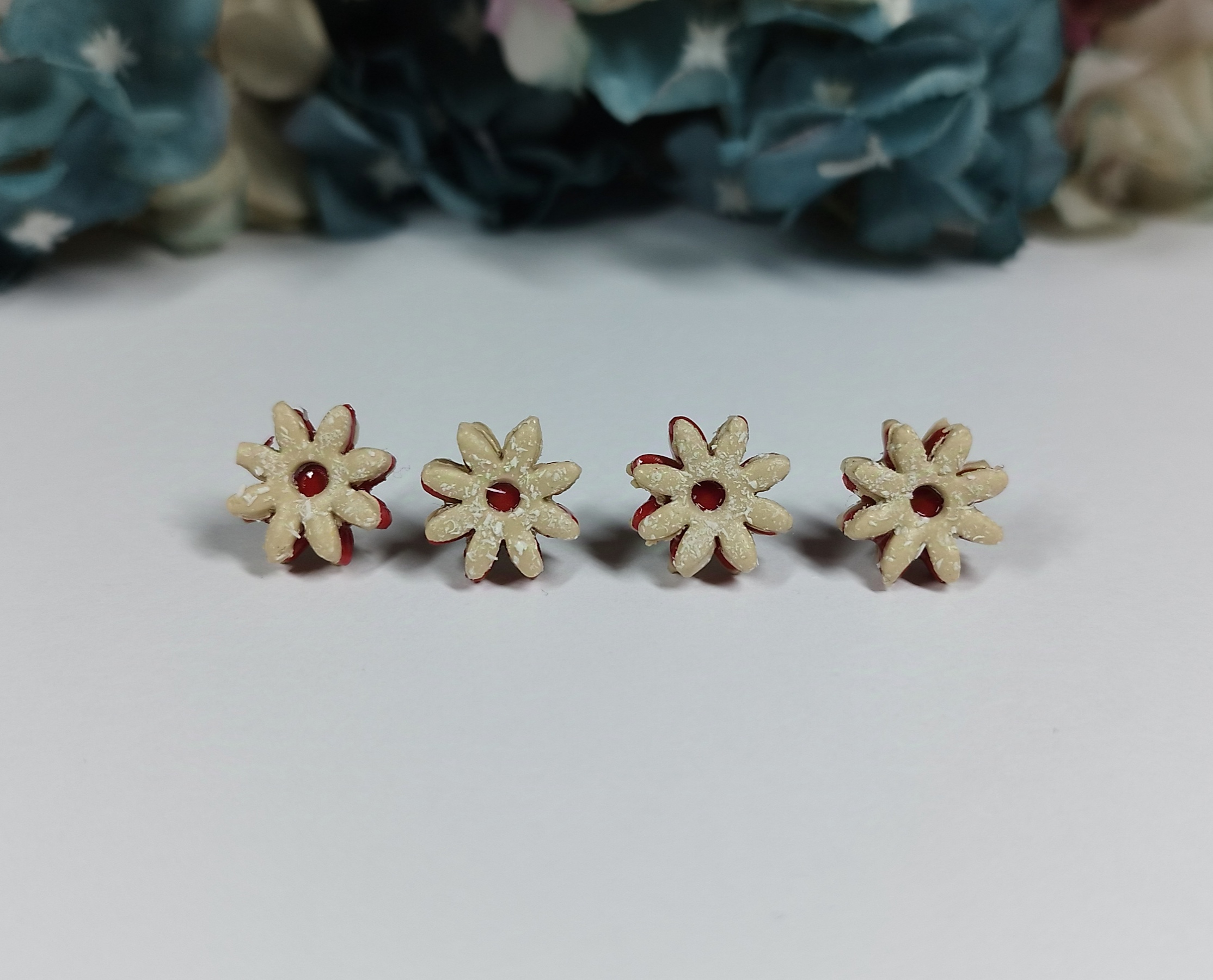 Naušnice v podobě lineckého cukroví ve tvaru květiny. Tento originální motiv je vyroben z polymerové hmoty a opatřen puzetou z chirigické oceli. Výrobek je přelakován speciálním pololesklým lakem. Naušnice je velká cca 1 cm. Nevhodné pro děti do 3 let nebo pod dohledem rodičů.