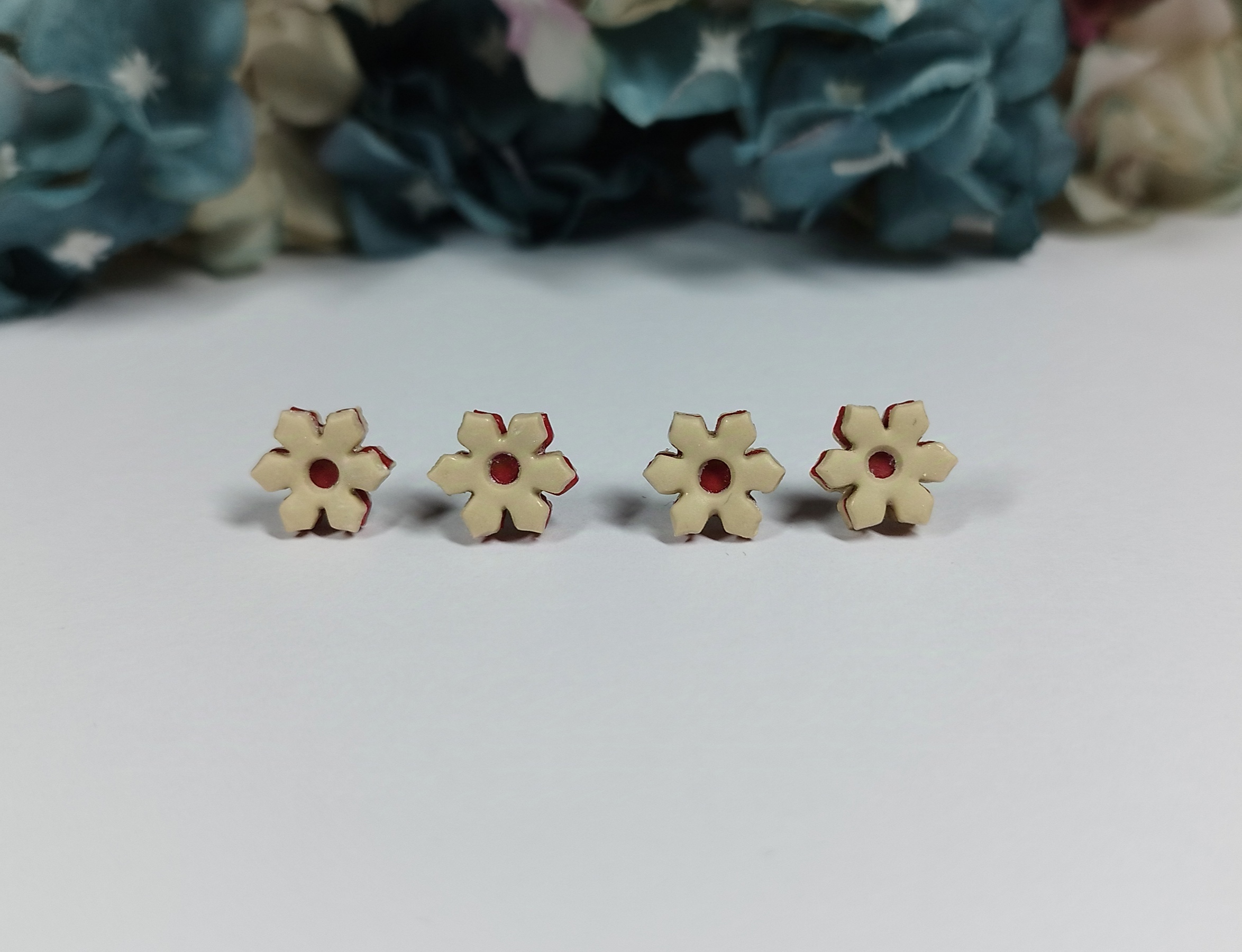 Naušnice v podobě lineckého cukroví ve tvaru sněhové vločky. Tento originální motiv je vyroben z polymerové hmoty a opatřen puzetou z chirigické oceli. Výrobek je přelakován speciálním pololesklým lakem. Naušnice je velká cca 1 cm. Nevhodné pro děti do 3 let nebo pod dohledem rodičů.