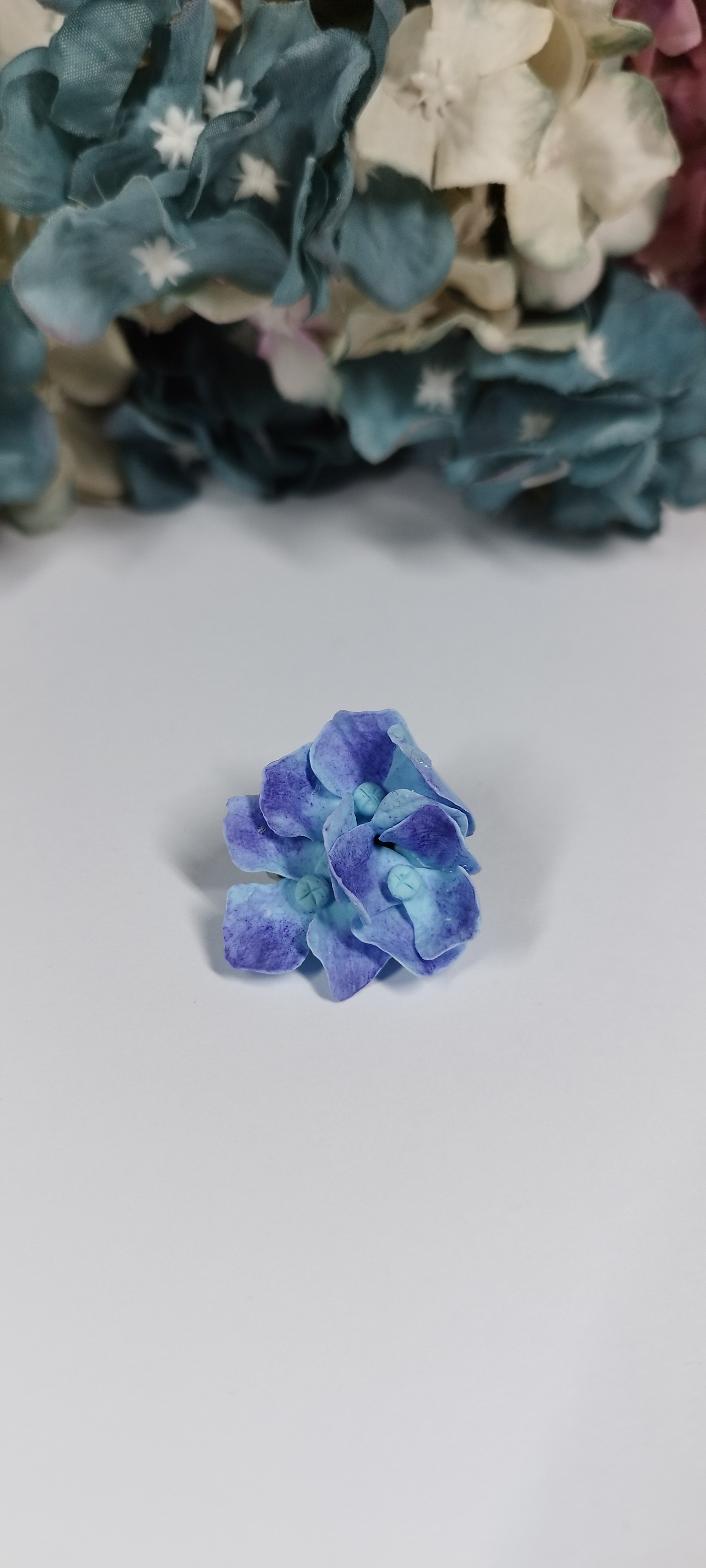 Brož s květem modro-fialové hortenzie okouzlí svým jedinečným zpracováním opravdu každého. Propracovaným provedením z polymerové hmoty se snaží originálně napadobit pravou květinu. Brož je možné připnout pomocí spínacího špendlíku z chirurgické oceli. Velikost sedmikrásky je cca 2,5 cm. Květ je přetřen speciálním lakem, díky čemuž zůstane pevný. Nevhodné pro děti do 3 let nebo pod dohledem rodičů.