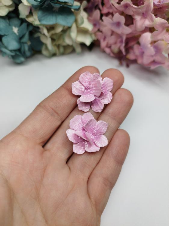 Růžové květy hortenzie na puzetě z chirurgické oceli. Náušnice se třemi květy je propracovaně vyrobená z polymerové hmoty a je velká cca 2,5 cm. Květiny jsou přelakované speciálním lakem, díky čemuž jsou odolnější. Nevhodné pro děti do 3 let nebo pod dohledem rodičů.