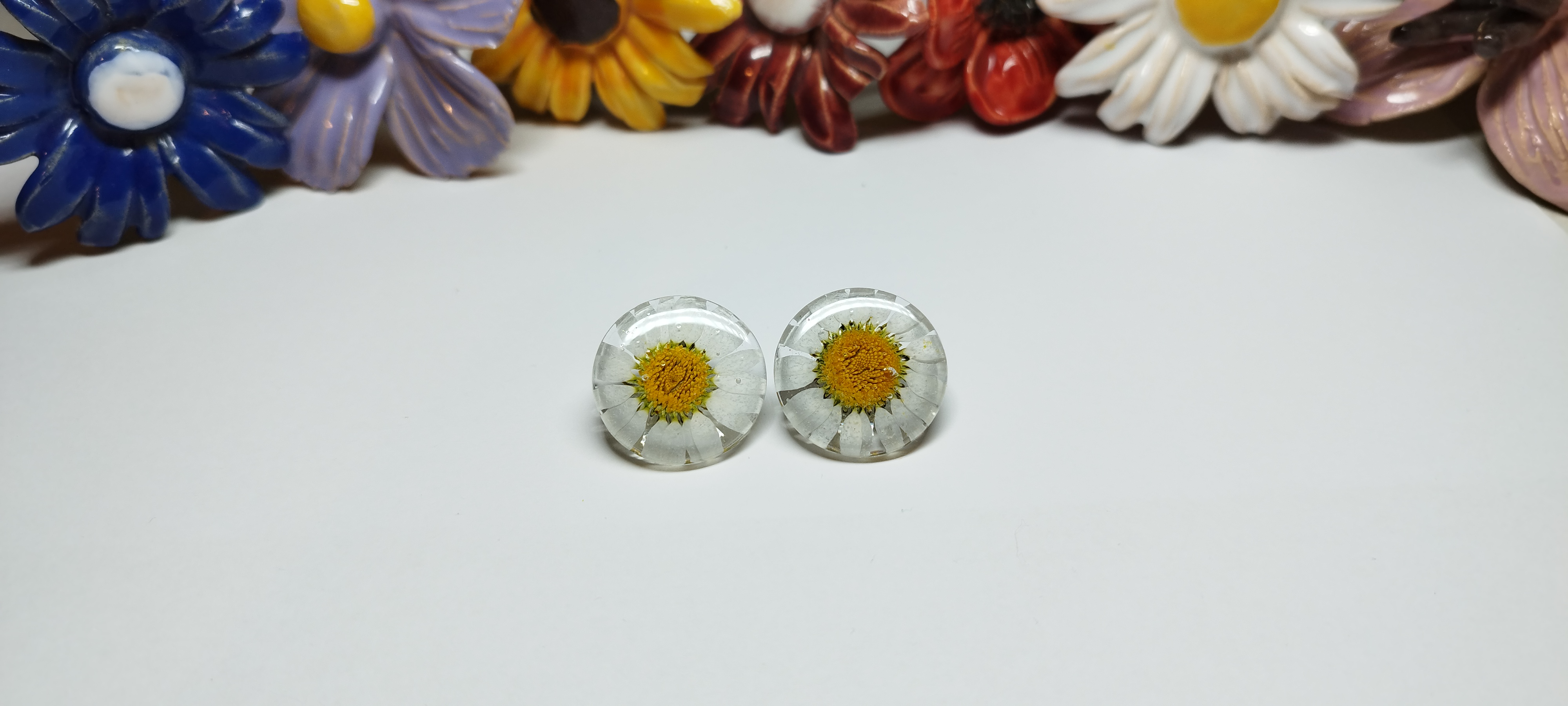 Květ pravé kopretiny zalitý v křišťálové pryskyřici Vás vtáhne do přírody. Květina je na puzetě z chirurgické oceli. Květ je velký cca 1,8 cm. Nevhodné pro děti do 3 let nebo pod dohledem rodičů.