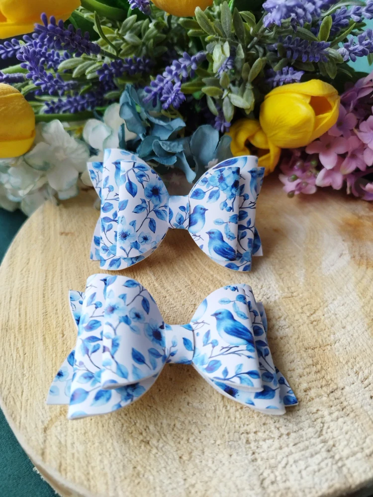 Mašle do vlasů vyrobená převážně z koženky a kraftových látek od ANZO DOPLŇKY PRO HOLČIČKY s květinovým motivem a ptáčkem. Pro všechny malé i velké parádnice.