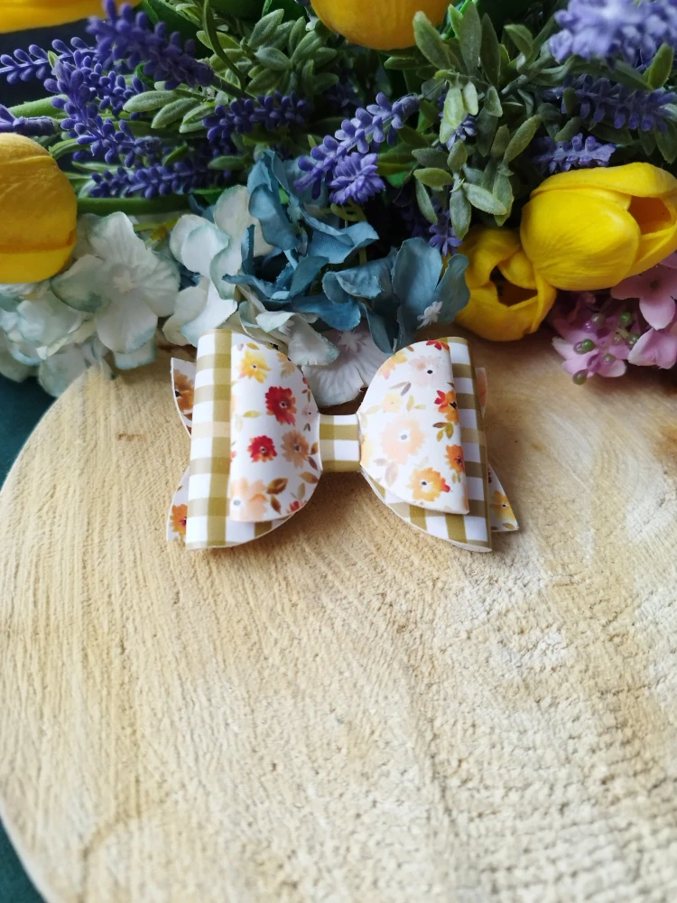 Mašle do vlasů vyrobená převážně z koženky a kraftových látek od ANZO DOPLŇKY PRO HOLČIČKY s květinovým motivem. Pro všechny malé i velké parádnice.