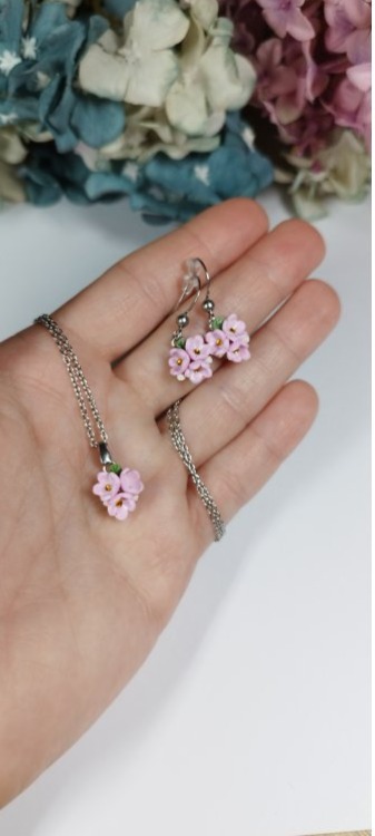 Sada růžových pomněnek, která obsahuje oblíbené produkty - visací náušnice a náhrdelník. Květy jsou vyrobené z polymerové hmoty a umístěné na komponenty z chirurgické oceli. Květiny jsou přetřené křišťálovou pryskyřicí, díky čemuž jsou lesklé a pevné. Vše je zabaleno v dárkové krabičce. Nevhodné pro děti do 3 let nebo pod dohledem rodičů.