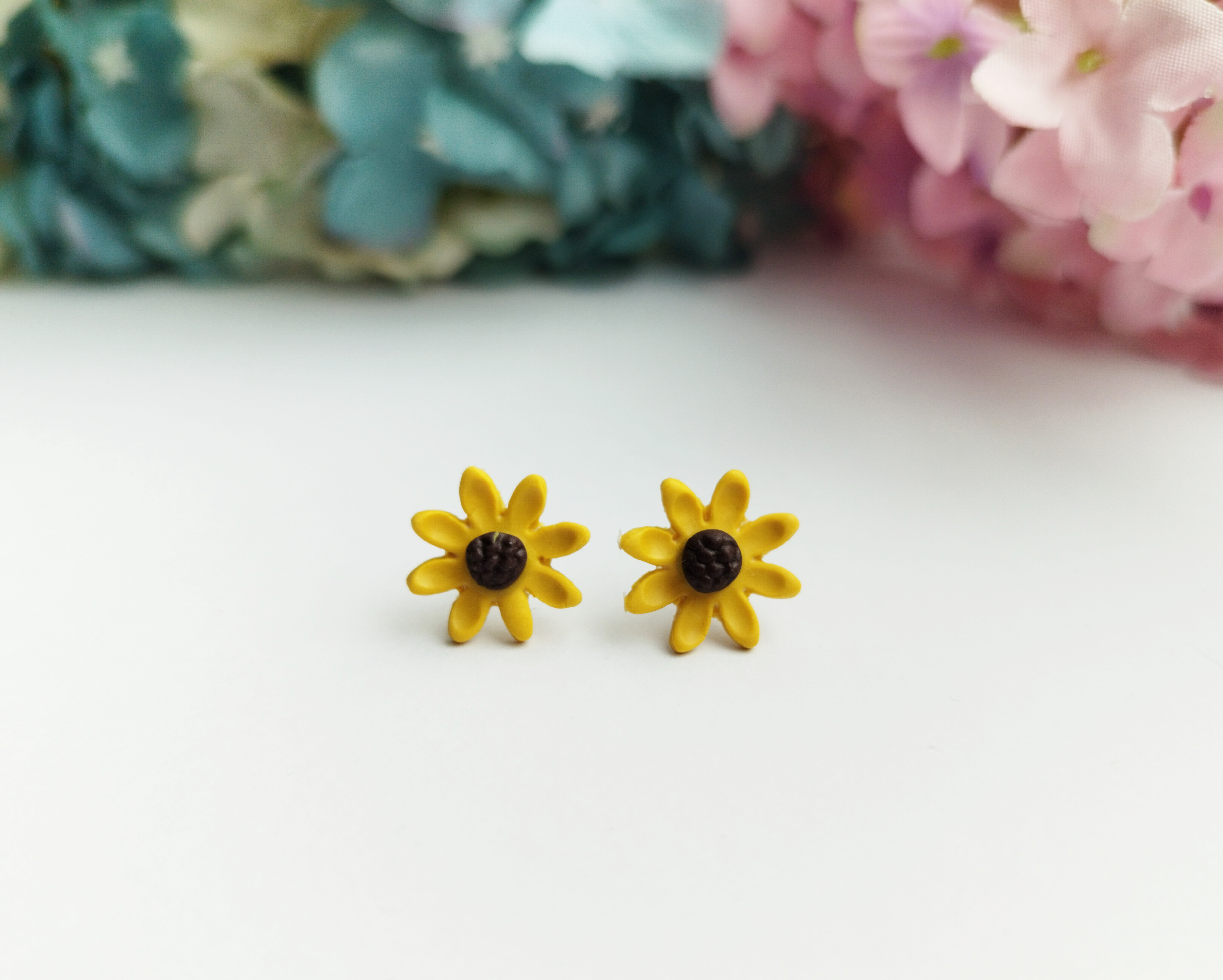 Žlutý květ připomínající slunečnici je vyrobený z polymerové hmoty. Slunečnice je cca 1,5 cm velká a je opatřena puzetou z chirurgické oceli. Výrobek je přelakován speciálním lakem. Nevhodné pro děti do 3 let nebo pod dohledem rodičů.