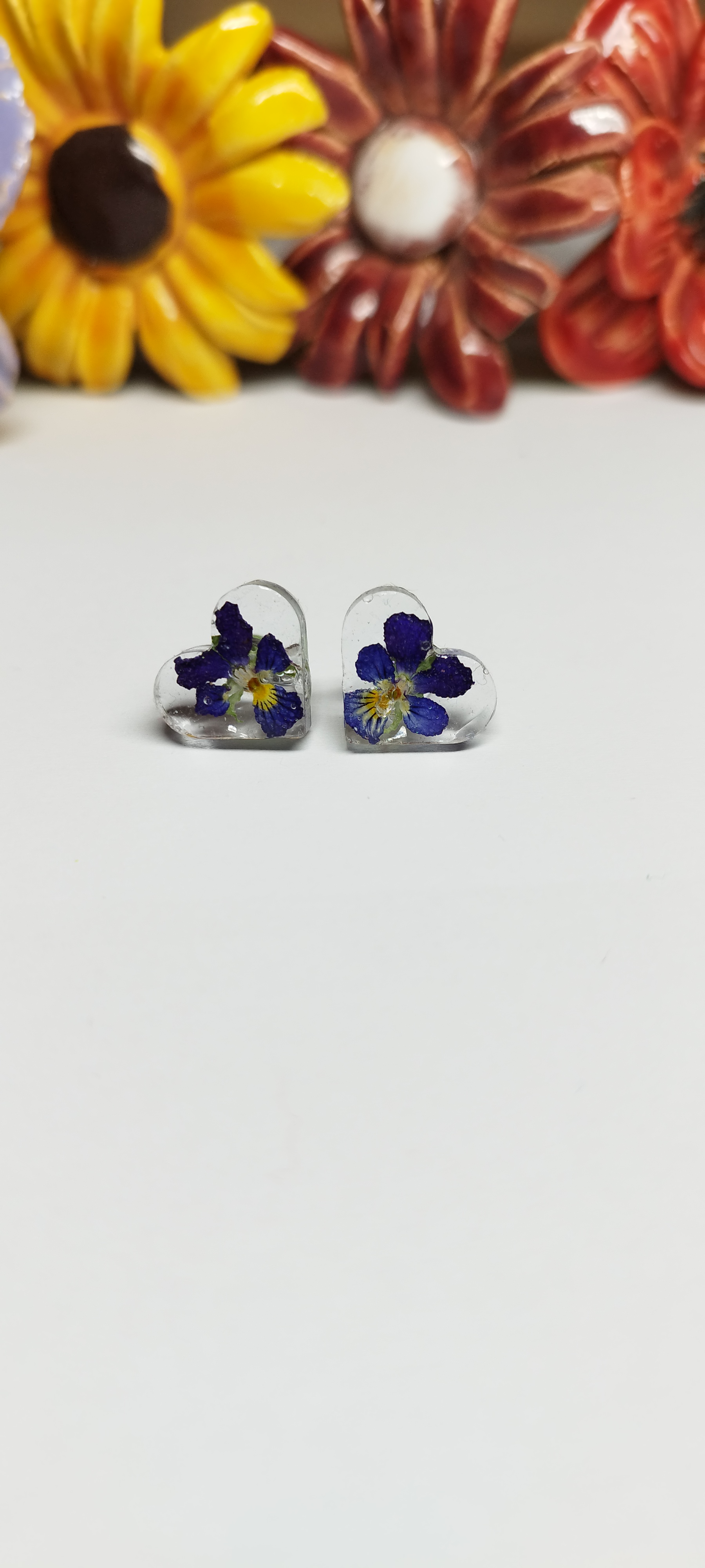 Úžasná náušnice z křišťálové pryskyřice ve tvaru srdce, uvnitř kterého je zalitá pravá sušená modrá violka. Náušnice je na puzetě z chirurgické oceli. Srdce je velké cca 1,2 cm. Nevhodné pro děti do 3 let nebo pod dohledem rodičů.