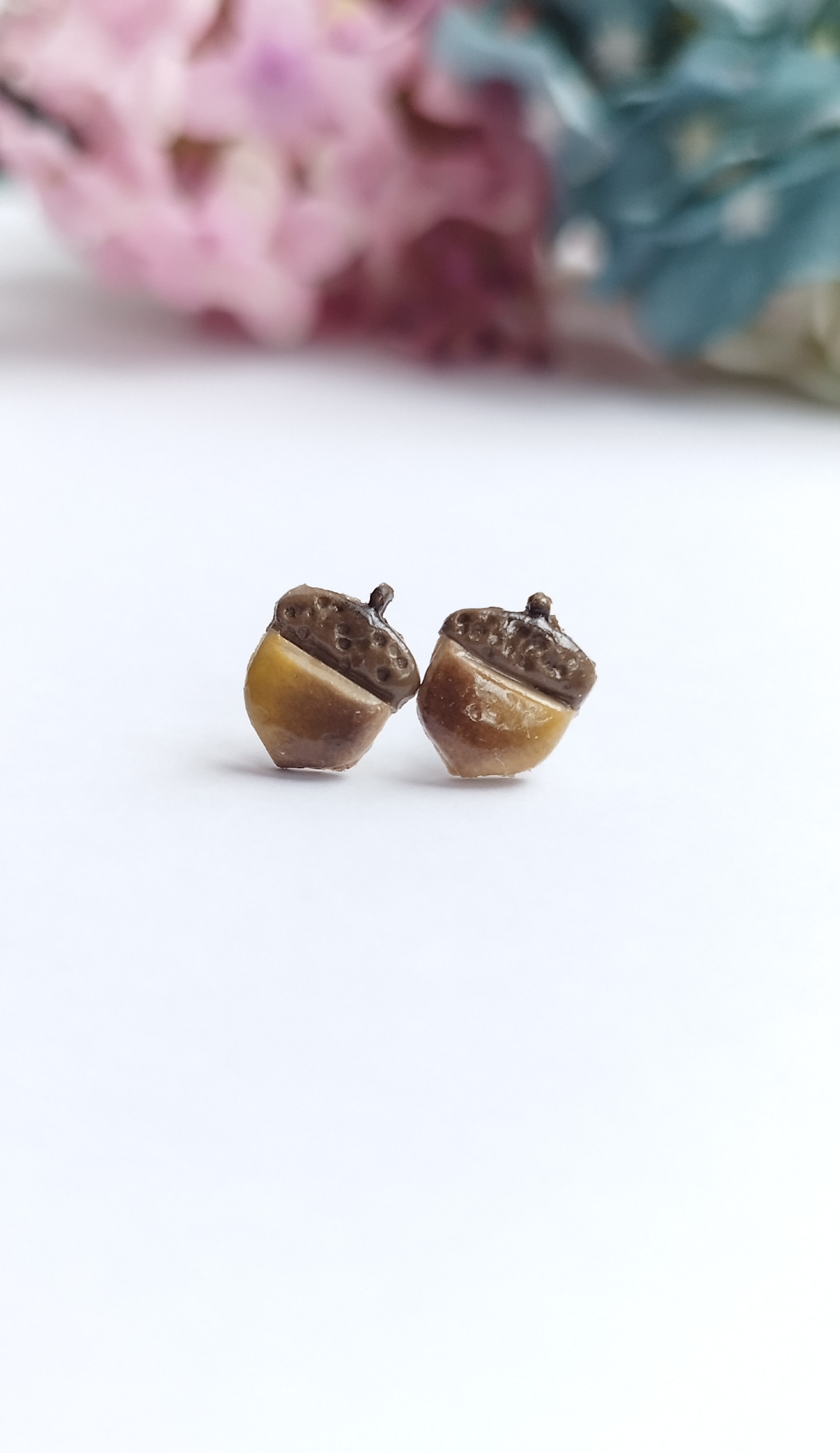 Podzimní drobná náušnice ve tvaru žaludu. Žalud je vymodelovaný z polymerové hmoty a je velký cca 0,7 cm. Náušnice je puzetová, vyrobená z chirurgické oceli. Nevhodné pro děti do 3 let nebo pod dohledem rodičů.